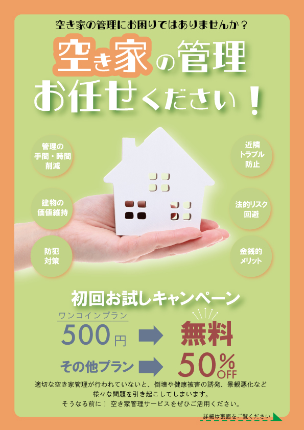 空き家管理・土地管理サービスを新たにスタートいたします。